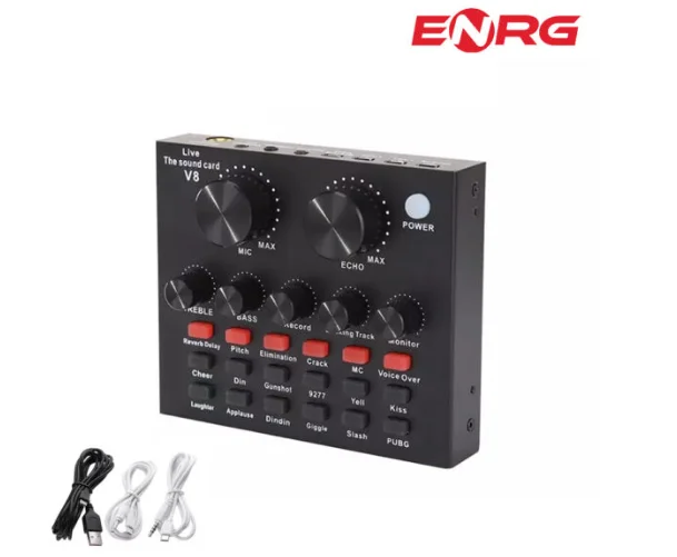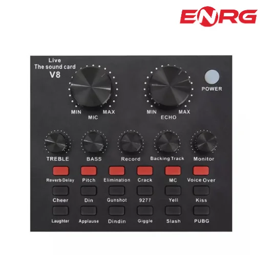 - ENRG Professional Audio Sound Card Amplifier Voice Changer for Live Streaming Music Recording Broadcast with Multiple Sound Effects – Black